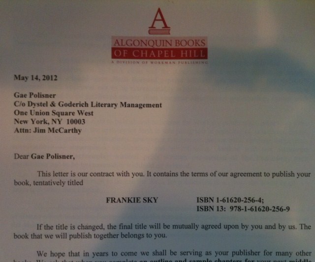 As some of you know, I recently sold my next YA manuscript to the wonderful Algonquin Books -- a ms currently called "Frankie Sky." Since I'm steeped in revisions for my editor, I thought I'd throw up a section I was working on yesterday. This is the very end of Chapter 7.