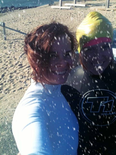 As for swimming news (see, I should switch back to Spanish, because this blog post suddenly sounds like one of those chain Christmas letters), I think our open water season is finally (heartbreakingly) over, but what a freaking hugely fantastic exhilarating magnificent season it was. End o' May to January 7th. [image error] Here's my friend Annmarie and I right before we swam on