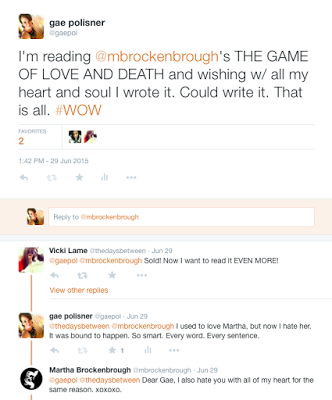 I fell in love with Martha, the person, on facebook, then fell in quick hate with Martha, the author, about one page in to her extraordinary novel The Game of Love and Death.You know, the kind of mesmerized, green-eyed hate where, with each sentence you read, you start to question why you even bother to write.