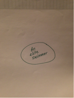 This is me. Here in my swim cap and bathing suit poised on the edge of the pool.