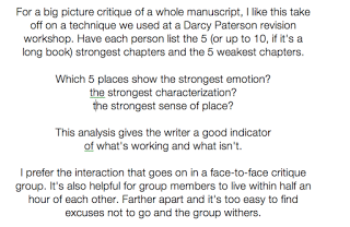 4. Once you have done that, you're invited to post your own BRIEF excerpt in the comments and we -- my guest authors and I, and even other Friday Feedbackers -- will offer you the same limited information in the comments.