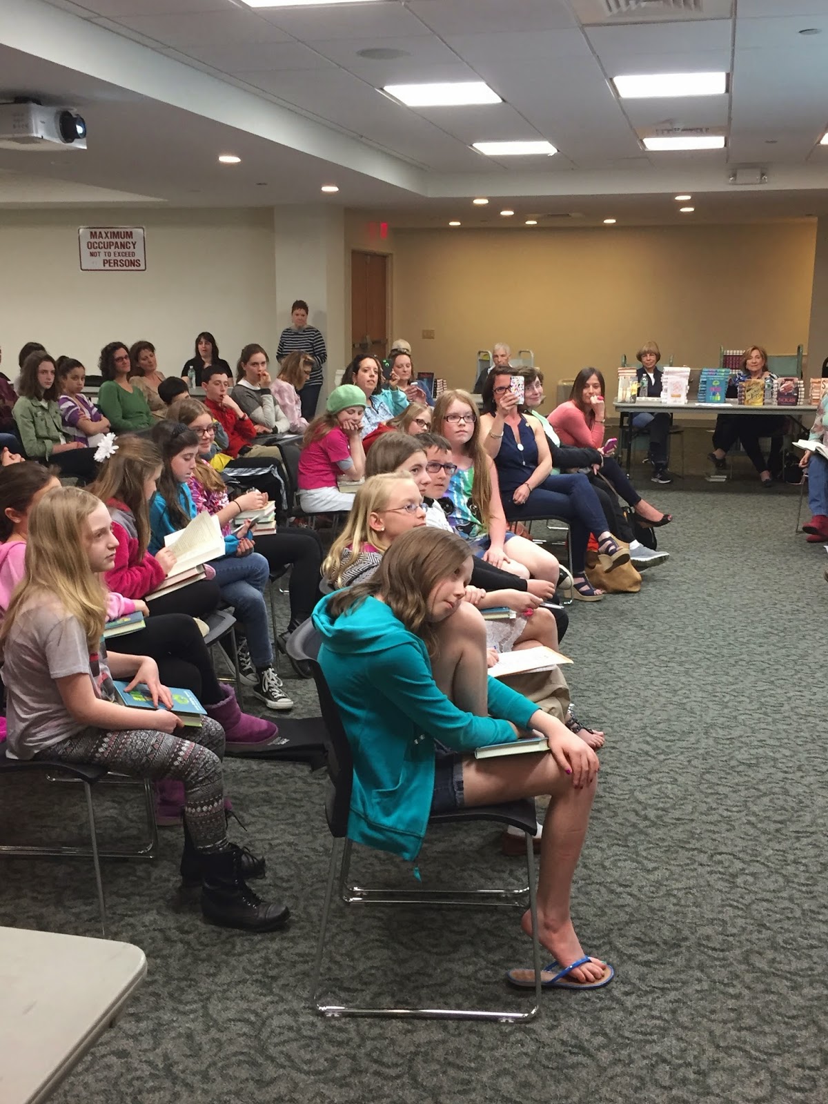 Despite it being one of the first sunny and warm weekend days of the year, we had a pretty full house and an extraordinary group of kids who stayed for the WHOLE event, from 90-Second Read Aloud through the book sale & signing, through the tween & teen only Writers Workshop!