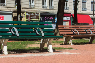 Il ne faudrait surtout pas y rester trop longtemps, et quelle largeur de banc!Des bancs munis d'arceaux en acier: