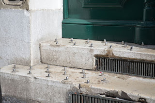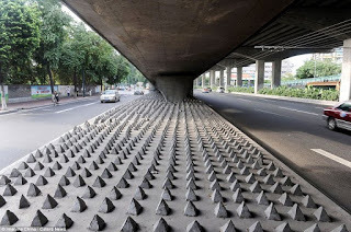 Charming, isn't it? Des allées centrales sous les ponts recouvertes de pointes: