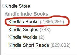 Pour info, on sait en allant sur le site Amazon, que de manière globale, tout store confondu, on est aux alentours de deux millons six cent quatre-vingt quinze mille ebooks et des poussières publiés uniquement par des auteurs indépendants ou autoédités, au moment où j'écris ces lignes.