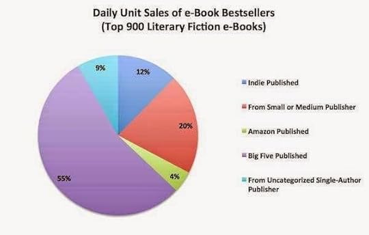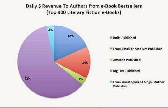 Pour les auteurs français, bien qu'il s'agisse d'une étude exclusivement américaine, les graphiques les plus intéressants sont à mon sens ceux des auteurs de fiction littéraire (étude portant sur 900 ebooks): ce sont les genres les mieux vus en France, ceux qui donnent souvent lieu aux prix Goncourt, par exemple. On s'aperçoit que les auteurs littéraires, même aux Etats-Unis, sont formidablement "captés" par l'édition traditionnelle, même si en ce qui concerne les revenus ebooks, ils gagnent moins que s'ils s'étaient autoédités.