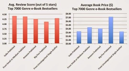 L'auteur Hugh Howey, aidé par un programmeur/statisticien, révèle sur son site authorearnings.com des chiffres de vente étonnants sur une journée sur le site Amazon.com, dans les catégories Polar/thriller, SF/Fantasy, Romance/érotique, que ce soit des cinq plus gros éditeurs (les Big Five), des petits éditeurs, ou bien sûr des auteurs indépendants (autopubliés). Des statistiques à prendre avec des pincettes, puisqu'il ne s'agit que d'une journée de vente en janvier 2014 sur le seul Amazon.com, et que seuls ont été pris en compte le top 7000, top 2500 et le top 100. Néanmoins, les révélations sont tonitruantes.