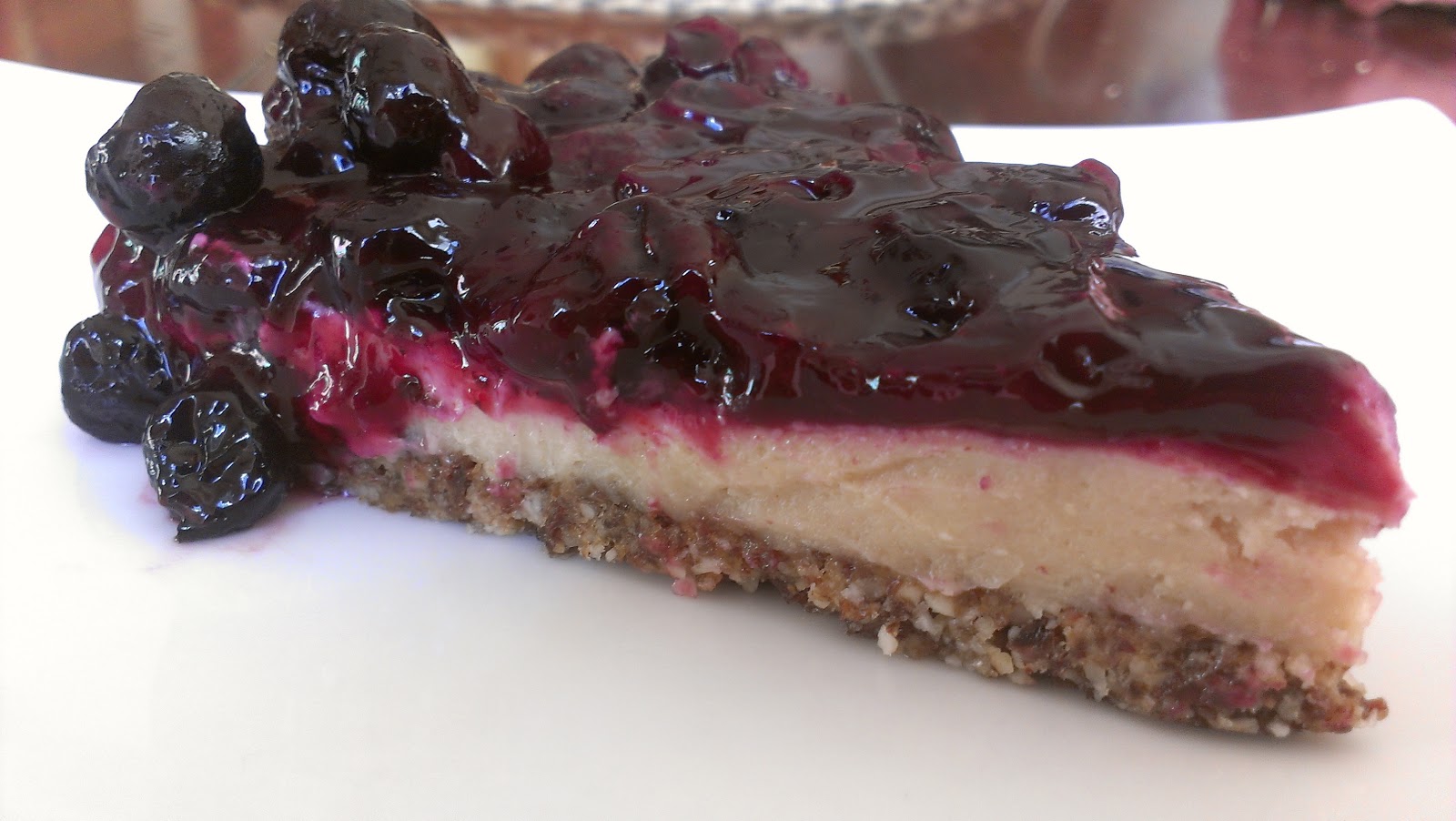 Vegan Cheesecake with Blueberry Topping - Mostly Raw!