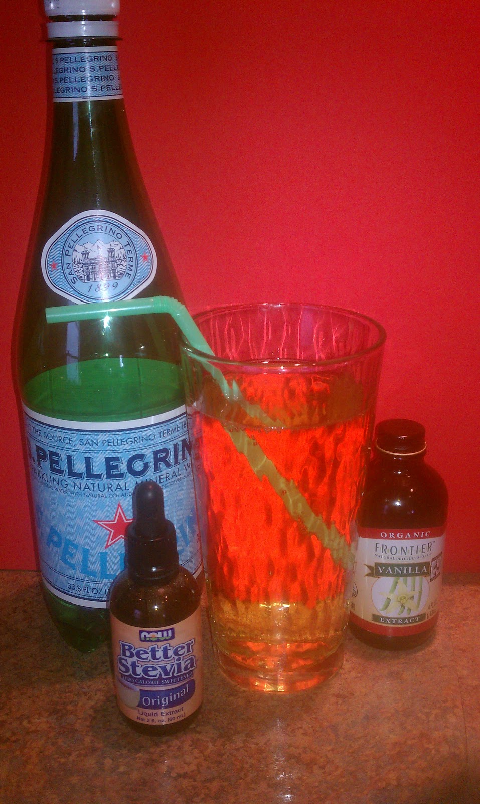 This recipe could not be more simple! Plus, it's not just easy and quick, it's also totally guilt-free. Stevia is honestly the one sugar-free sweetener that I'm totally convinced is safe. This became clear to me when I saw it growing (in all its cute and innocent glory) outside my friend's house! It's just a sweet green plant that, in liquid form, makes a great sweetener for beverages. Just make sure not to use too much - it's strong stuff! Personally, I've been enjoying one of these every day. They totally fulfill that craving for a bubbly, fun treat - but leave me feeling great afterwards! : )