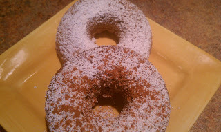 5. Place the donut pan, upside-down, on top of a cooling rack or clean counter. The donuts should come right out, but if not, you may tap the pan gently to release your circular newborns.6. Dust the tops with organic powdered sugar and voila! Delicious, warm donuts up in your world!! Enjoy!