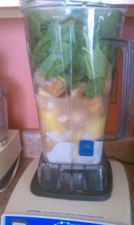 Place all of the ingredients together in a blender. It'll look a little something like this: