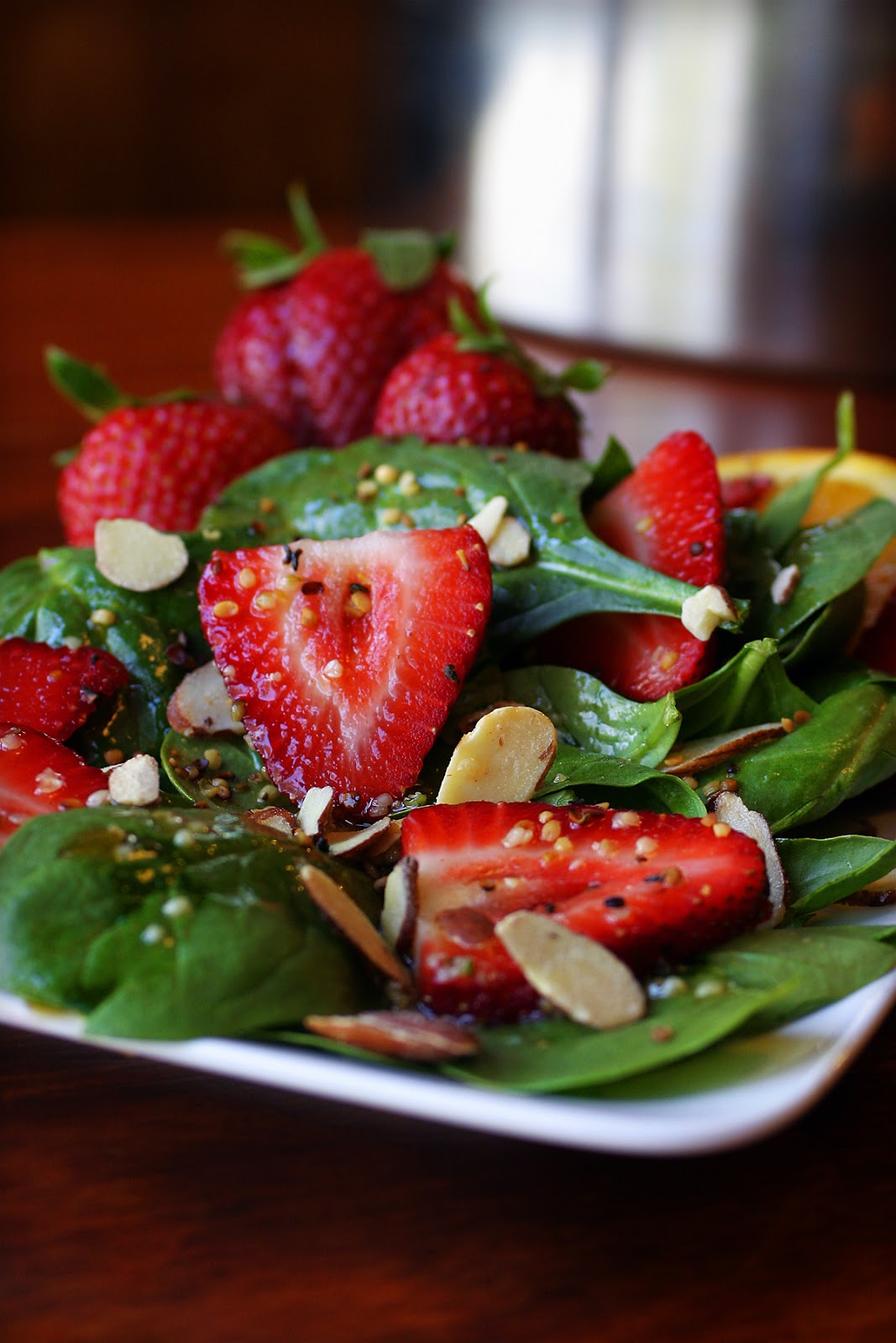 * My friend Elaine is bringing one of her magic salads (her salads are unreal!) this year, but normally I make either my Spinach-Strawberry Salad (pictured below and SO good!) or something along those lines.