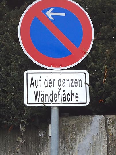 Vielleicht ist auch der Plural der im Hintergrund zu sehenden grauen Wandfläche gemeint, auf der das Parken tatsächlich nicht zu empfehlen ist.