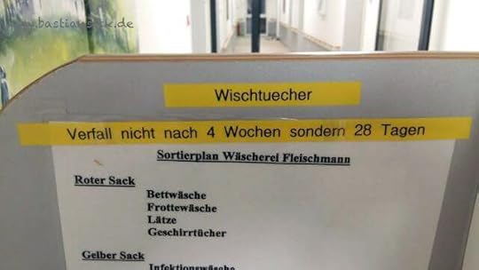 Als der Leitung des Altenheims zu Ohren kam, dass einige Reinigungskräfte ihre Wischtücher erst nach vier Wochen auswechselten, verfügte sie eine drastische Verkürzung. (Im selben Zug wurde die viertelstündige Kaffeepause auf 15 Minuten verkürzt.)