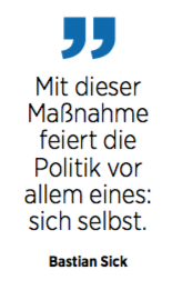 Mit dieser Maßnahme feiert die Politik vor allem eines: sich selbst. Die meisten Bürger nämlich sehen keine Notwendigkeit dafür und sind von der geschlechtergerechten Schreibweise eher befremdet. Doch immer mehr deutsche Kommunen leisten sich inzwischen einen »Gleichstellungsbeauftragte:n«, der seine Existenz irgendwie rechtfertigen muss. Das eigentliche Ziel der Gleichstellung, nämlich die gleiche Bezahlung von Männern und Frauen in gleichwertigen Positionen, wird so bald nicht erreicht werden, denn daran hat die Wirtschaft kein Interesse. Also gewährt man den Gleichstellungsbeauftragten ihre Sternchen und Doppelpunkte, damit sie wenigstens einen kleinen Erfolg für sich verbuchen können.