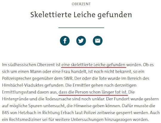 Der Beitrag Skelettierte Leiche vermutlich schon länger tot! erschien zuerst auf Bastian Sick.