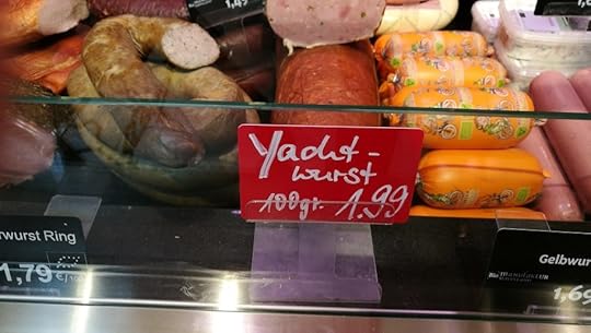 Fleischtheke in einem Bioladen in Berlin, fotografiert von Michael BiedermannDarauf hatten die Segel- und Motorbootfreunde lange warten müssen. Endlich gab es eine Wurst speziell nach ihrem Geschmack. (Vermutlich leicht nach Seetang riechend …)