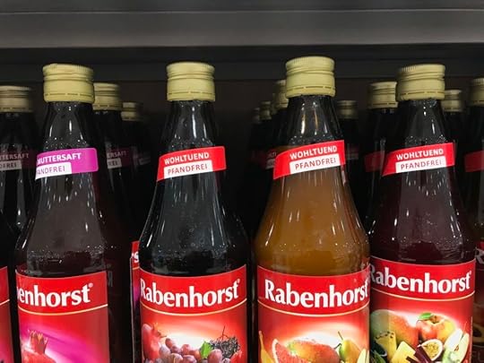 Saftflaschen der Marke »Rabenhorst«, fotografiert in einem »Edeka«-Markt in Hamburg von Bastian SickWas daran so wohltuend sein soll, dass die Flaschen pfandfrei sind, erschließt sich wohl nur den Recycling-Muffeln.