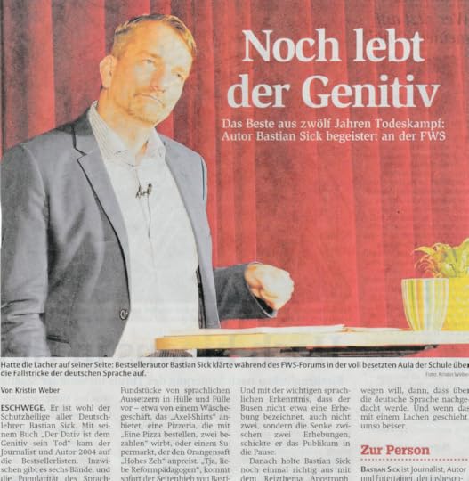 Ebenso die Liebhaber schön gestalteter Bücher, denn »Wie gut ist Ihr Deutsch? 2« überzeugt mit einer ansprechenden Aufmachung und vielen farbigen Abbildungen. Rund 30 Illustrationen hat meine ehemalige Assistentin Katharina M. Ratjen beigesteuert, die inzwischen Mutter zweier Söhne ist und zusammen mit ihrem Mann einen Landgasthof in Uetersen betreibt. Als Zeichnerin hält sie mir weiterhin die Treue. Selbstverständlich werde ich auch mit meinem neuen Buch wieder in zahlreichen deutschen Städten zu sehen und zu hören sein. Wer nicht bis zu einer Lesung warten will, kann mich auch schon früher erleben: Am 22.2. werde ich in der mdr-Talkshow „Riverboat“ zu Gast sein.