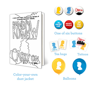 Pre-order Carry On now and you could receive everything you need to celebrate bookworm-style on launch day – a limited edition dust jacket that you can color yourself, Simon and Baz temporary tattoos, one of six snazzy badges, balloons – even Carry On tea bags with Simon and Baz on the packets.