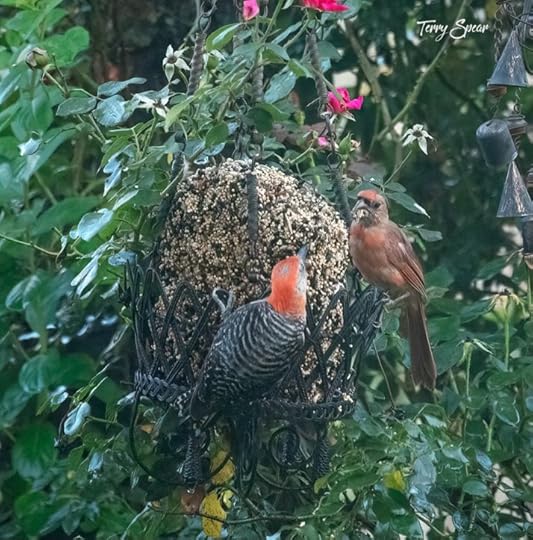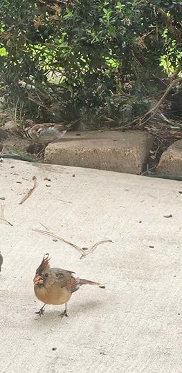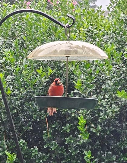 Then I returned home to be with my son for the month, and he fixed my water fountain, and I began feeding the birds. They’ve flocked back to the yard and filled it with birdsong. I love it!
