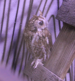 This is a smaller Screech Owl that I almost missed sitting way down below in his glassed-in room.