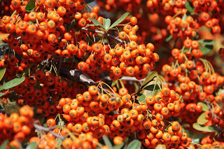 So it's time to decorate for Thanksgiving, and my pyracantha is also in beautiful form!