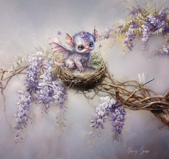 I love all shades of purple! This little dragon is well cloaked in drapes of lavender flowers to keep him safe. Wouldn’t you love to cuddle him?