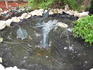 Have a very Happy 4th! Ban warnings all over because of the heat and dryness. Even the dragon above has to spew out water. Fire is forbidden. We did have a storm last night, but all it did was made a lot of noise, but no rain!