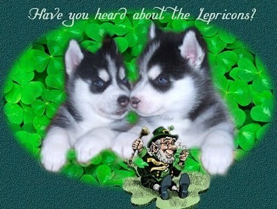 I tried to find some wolves in a St. Patrick's Day setting, but the cute Siberian Huskies were as close as I could get!