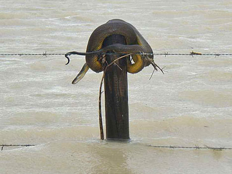 Even the snakes are trying to find some high ground!