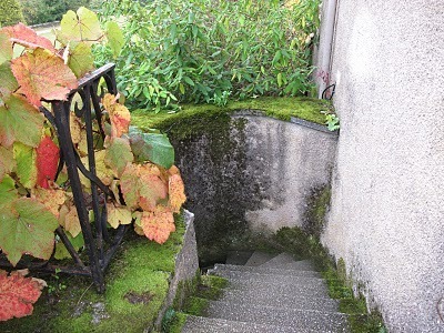 Here was a favorite staircase of mine--it also is like the gate through the shrubs, with a mysterious end. It actually ends up in the gardens. But notice how narrow the stairs, the hard curve left, that feels oddly unnatural. Think of coming up the stairs, sword drawn, not knowing what's just around the bend. Another swordsman, sword drawn, ready to cut the villain down. The man coming up has the disadvantage if he's a right-handed swordsman. Every aspect of a castle was designed for defense, so even a simple staircase into the gardens was designed with that in mind. :)