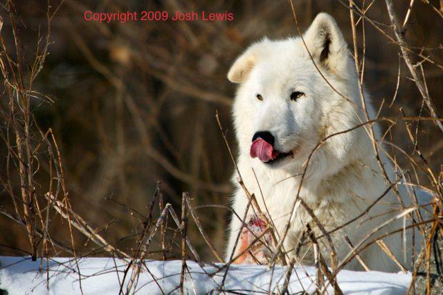 This wolf found his turkey! He'll be licking his chops afterward!