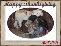 Okay, this wolf is thinking about turkey dinner! Licking his chops, anticipating all that great white and dark meat. Hmmm....