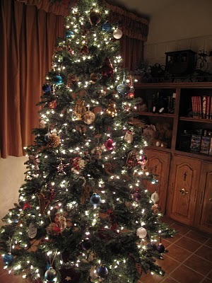 Here's my new tree! Why didn't I get rid of the old one years ago? This one's thinner, but soooo much easier to put up. And that's what I need. To simplify!