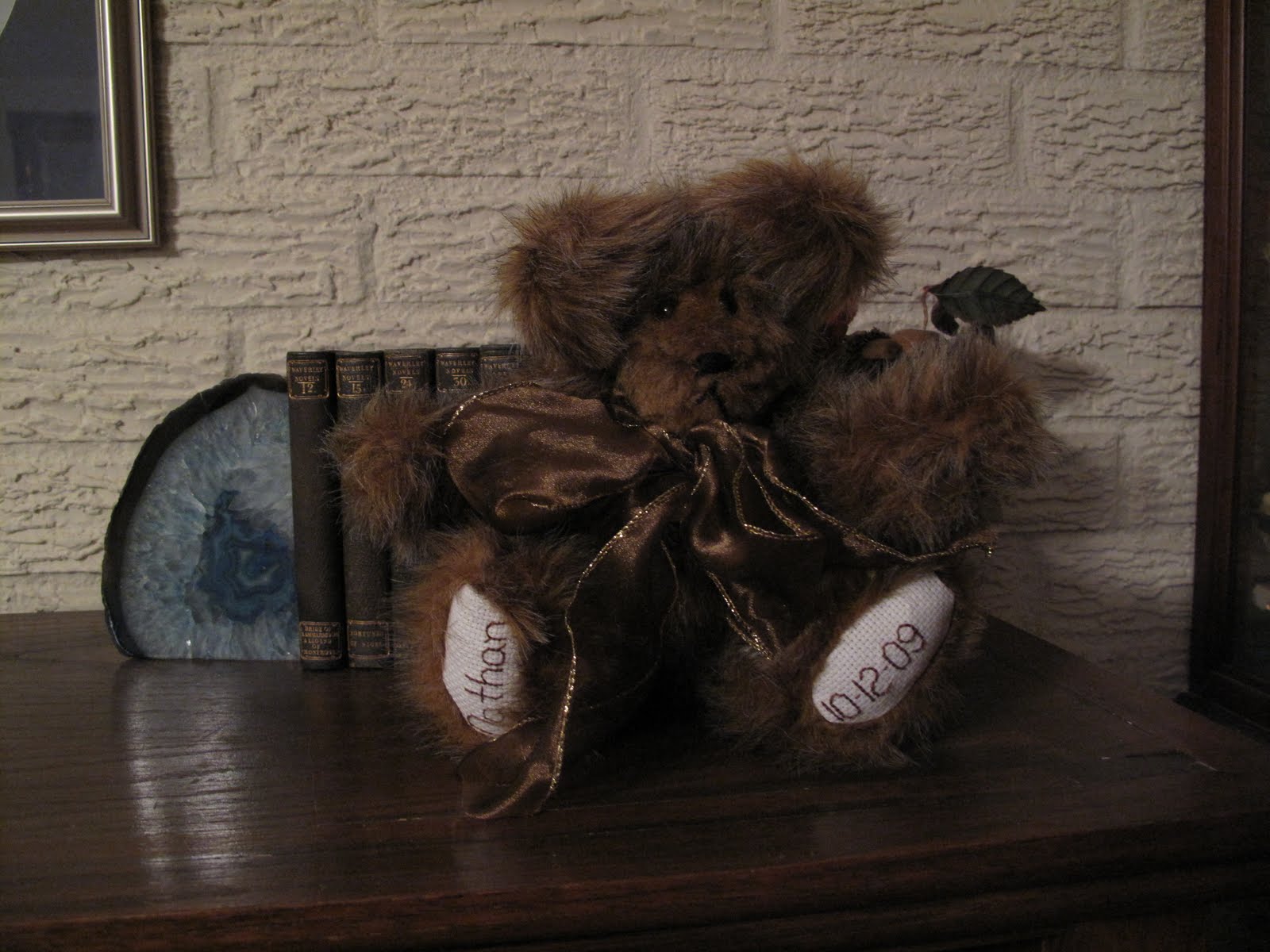 The little grizzly bear is ready to ship!!! And after I packed him all up and put him in my car, I realized I'd forgotten to take his picture. :( This is the same bear, essentially, for the same lady who ordered the other for another of her grandsons, only the one I did this time she wanted to have a red, white, and blue bow, and it was really cute. :)