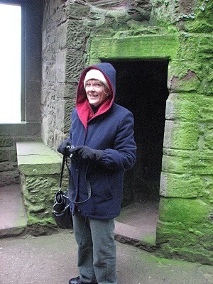 Dunnottar Castle, near Stonehaven, Aberdeen, Scotland off the east coast of Scotland was the first day of our trip. As you can see, I was bundled up that first day. It was windy, cold and situated high above the North Sea. It was the only day I wore a hat and gloves, although I believe I pulled up my hood on other occasions.