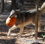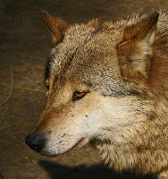 Here is a wolf who isn't quite sure about a pumpkin. I'm certain the wolf wouldn't be quite certain if a bunch of children bounced by in costume either. :) But wolves are curious creatures, so he'd probably be trying to figure it all out.
