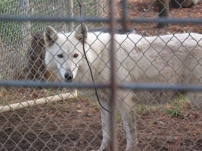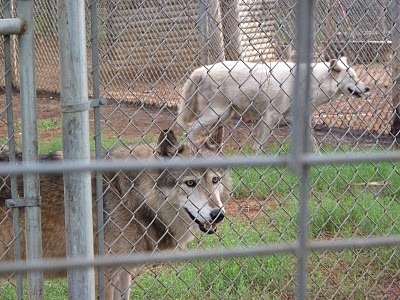 Here were a couple of the wolf dogs--I thought the one lying down looked more wolf like, longer, thinner face, narrow body....