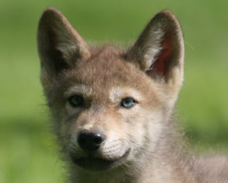 Note this wolf's blue eyes? It's because he's a pup. As he grows older, his eye color will change. :)