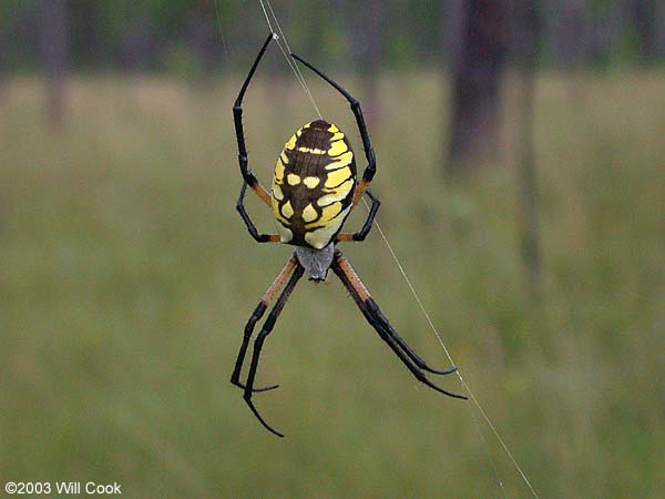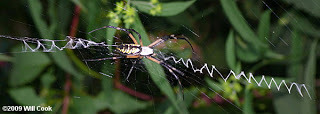 As you can see the way it designs its web, that's why we call it a "zipper spider." They're not dangerous, but when I've about walked through one in its web, it's nearly given me a heart attack. :)
