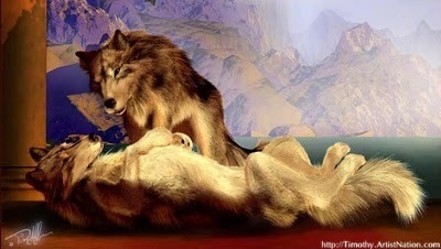 I loved this rendition of werewolves in their wolf coats. They don't look as realistic as wolves, but almost so. Now the question is--is the one on its back the female or the male? And if it was MY story, which would be which, do you think?