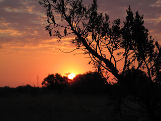 This is the view from my backyard this morning. :) Sun in the back. Red sky in the morning, sailor's warning. But no storms in sight, so not sure they know what they're talking about!!!
