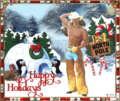 Okay, here's a Texas Santa that ended up in the North Pole without his fur jacket. But then, we would rather he wasn't wearing it, right?