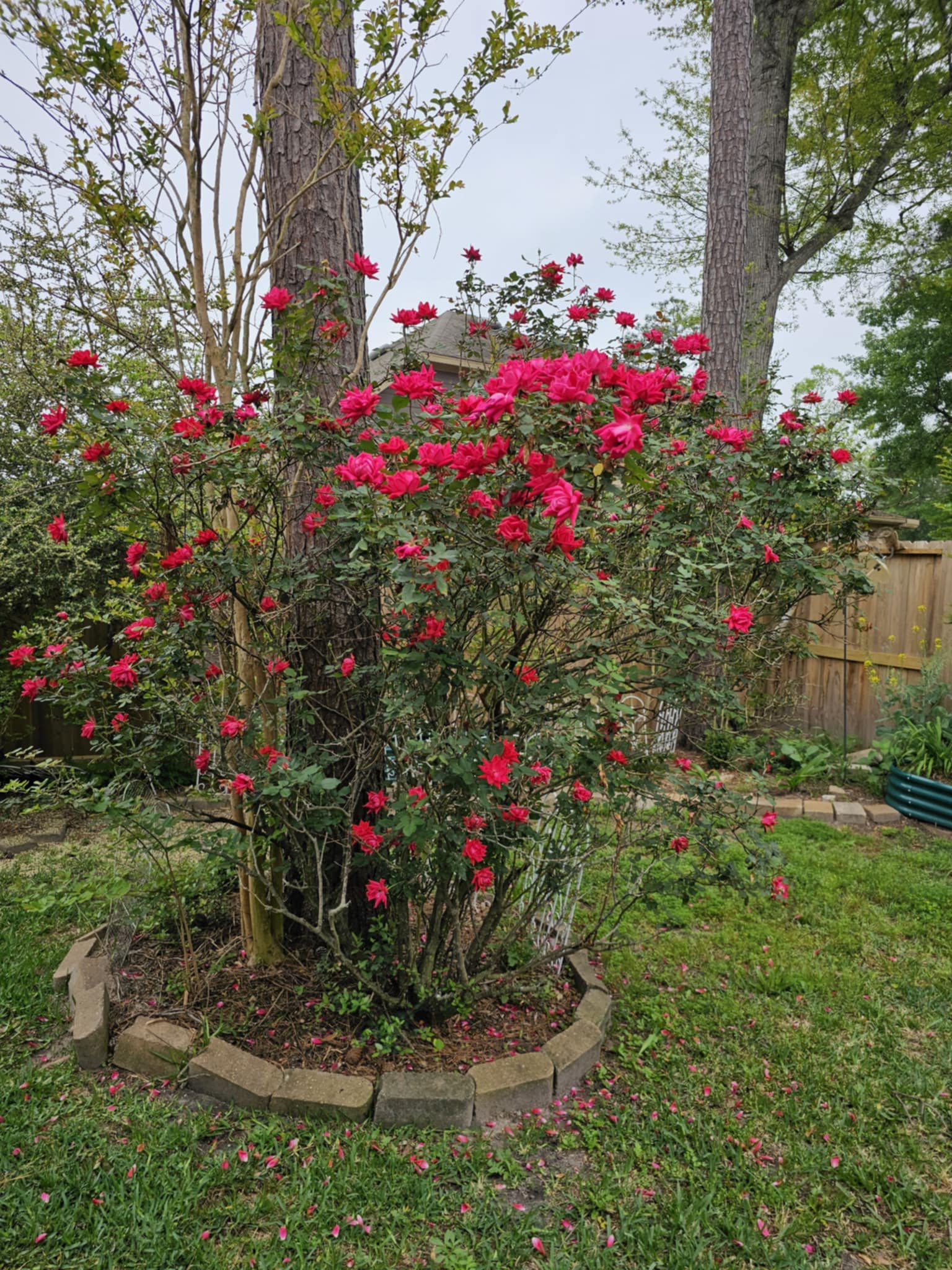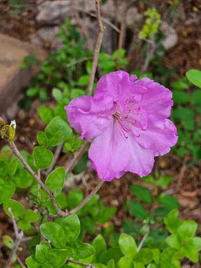 Rescued azalea at Home Depot some years ago. It needs to be in a sunnier location. It used to be. But other shrubs and crepe mytles now tower over it.