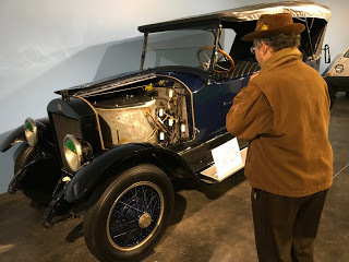 We've been here before, but the exhibits change from time to time, and besides it's a really neat place. My favorites remain the Ford Model T and Model A's, which I think just represent in my mind the default of what a classic car shd be like.** Which is not to say I didn't appreciate the many, many other neat cars they had, particularly the Packards. The most interesting car was the Stanley Steamer: they had the hood up so you cd see the boiler, and get a sense of just how complicated this car was to drive. There was no sign of a firebox, which was puzzling. It's easy to forget that once upon a time we had a choice: in those early days there were electric cars (reliable start, quiet ride, low mph, limited range/charge), steamers (great cars but more likely to blow up than gas-powered cars), and the gasoline-powered cars (great range, higher speed) whose descendents ruled the road for the next century.