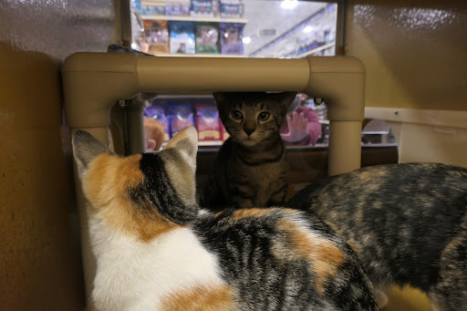 Lots of people stopping by to look at the cats, who were happy to be on display in the windows.