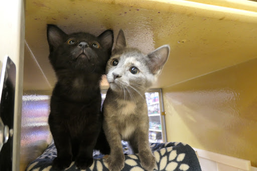 So, after a highly successful kitten event and some follow-up adoptions, today we're left with three cats and four kittens in the Cat Room: Our veteran resident brother-sister team SIMBA and ZOE, new mama cat ROSIE, the pair of little black kittens JET and JAGUAR (who I think are also bonded) and two other kittens MARBLE and BLACK BEAR.