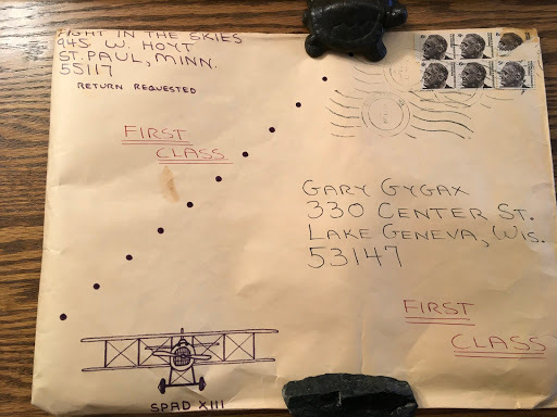 So, when looking through my rather miscellaneous grouping of copies and partial copies of the old TSR roleplaying game DAWN PATROL / FIGHT IN THE SKY, I found this mailer.