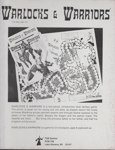 As my Marie Kondo deathmarch through my shelf-full of early TSR boardgames I've had for years and for the most part never played continues, we come to WARLOCKS & WARRIORS (1977), product #1003.